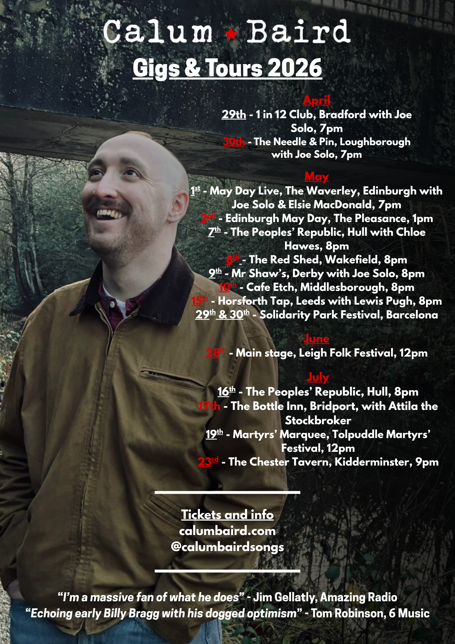 “Echoing early Billy Bragg with his dogged optimism” – Tom Robinson, BBC 6 Music